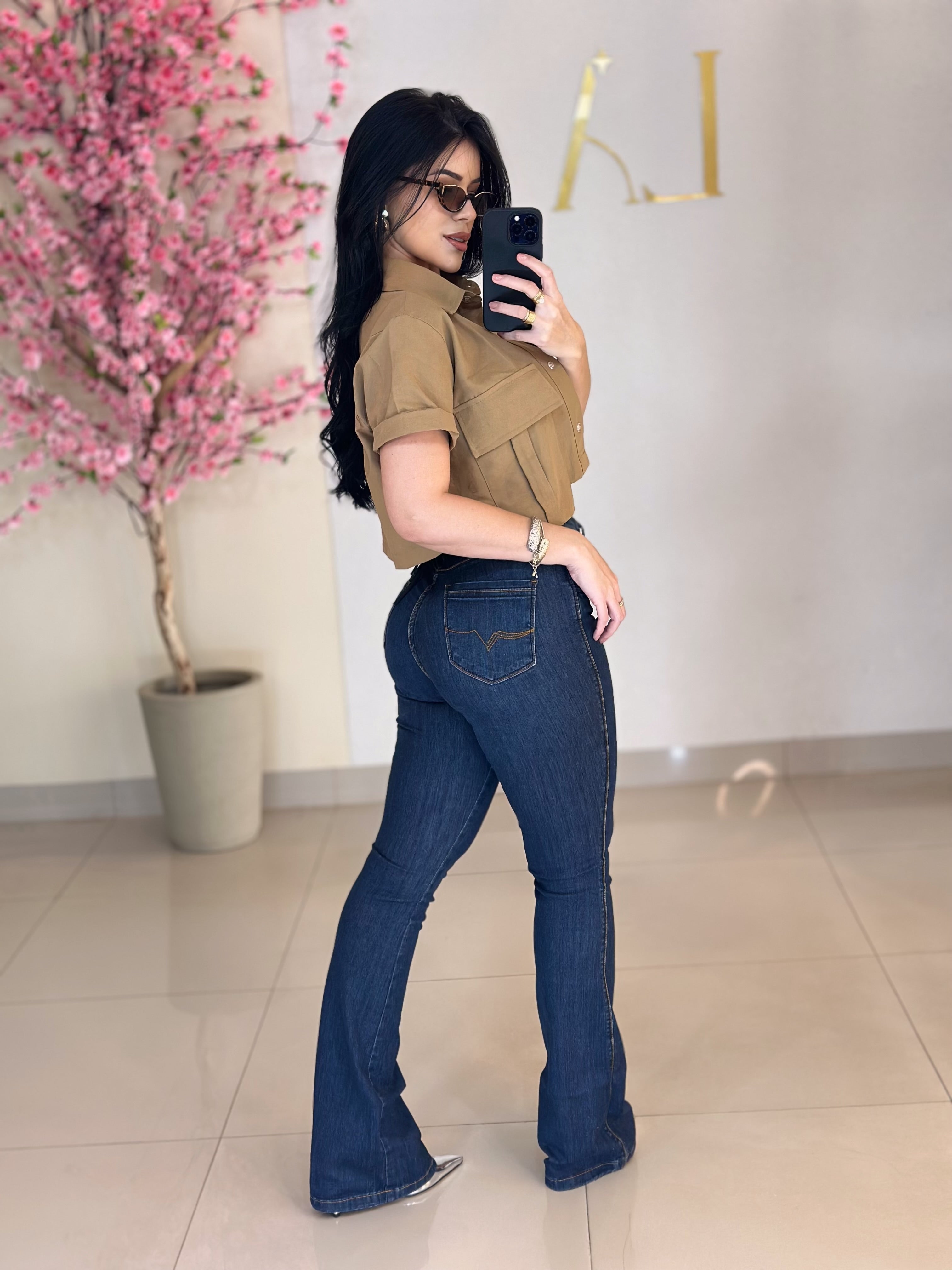 CALÇA FLARE COM LYCRA/ELASTANO – uma peça atemporal que combina elegância e conforto! O modelo flare destaca-se pelo seu caimento ajustado na parte superior e pela abertura sutil na barra, criando um visual sofisticado e equilibrado.