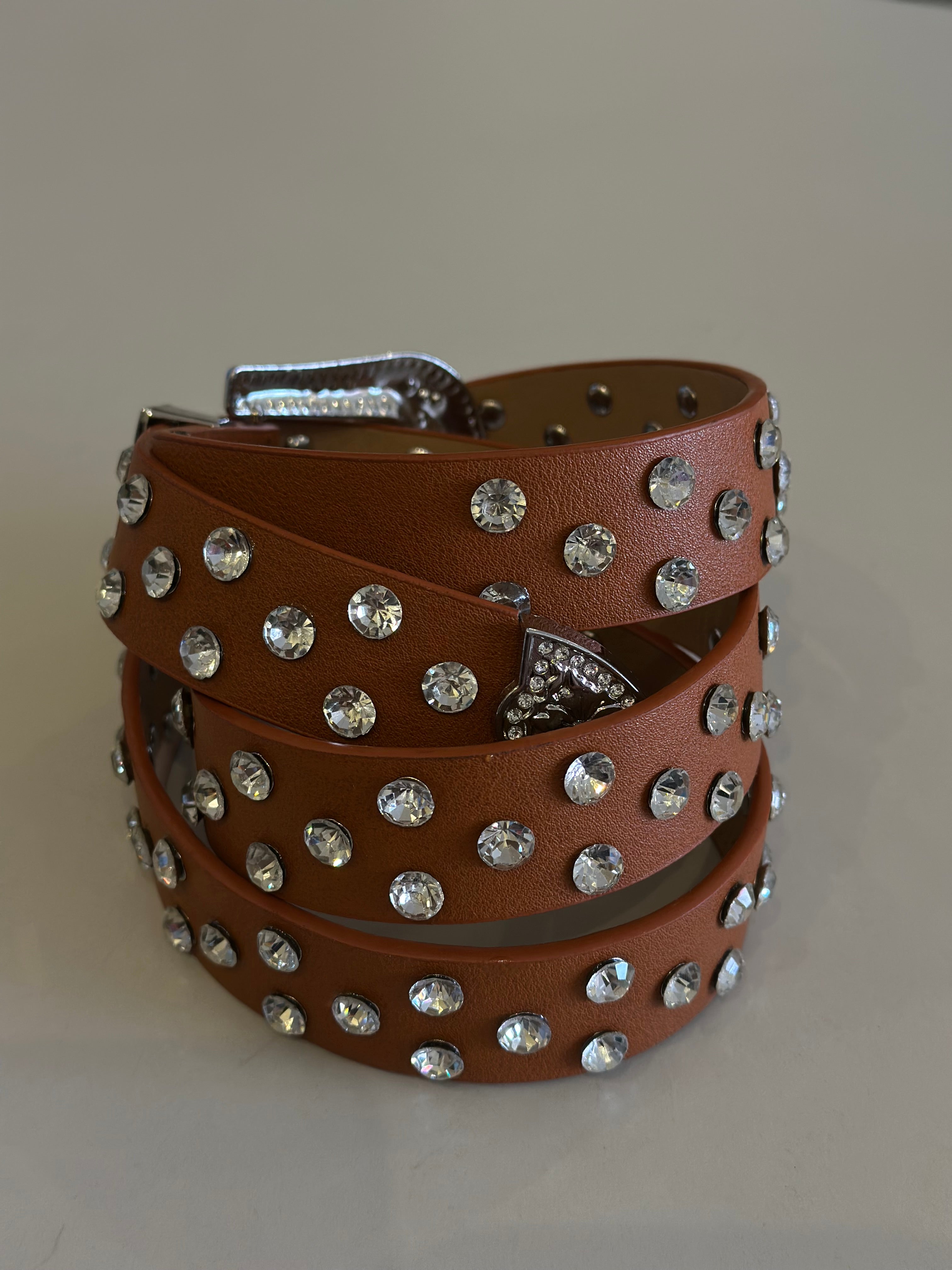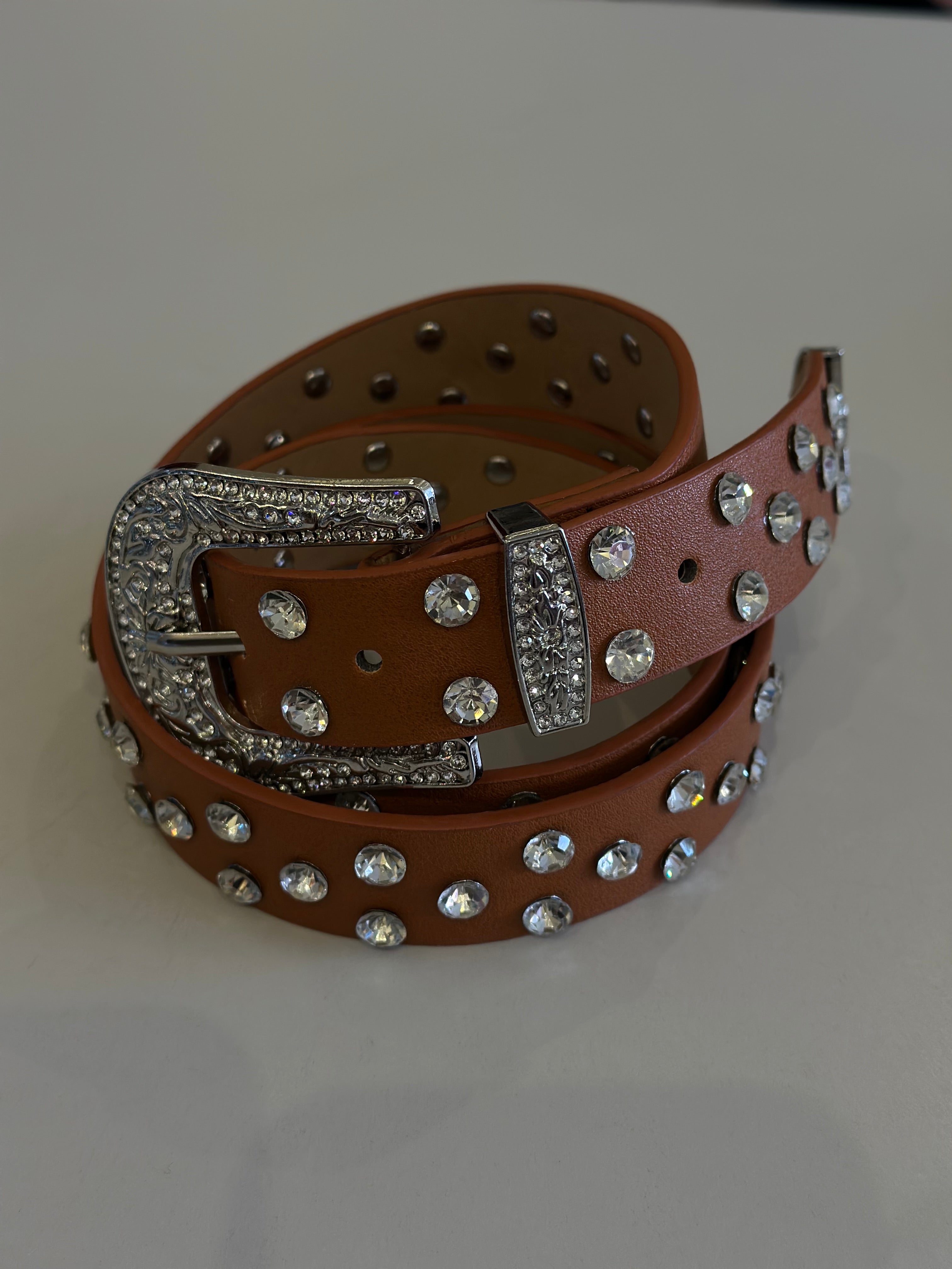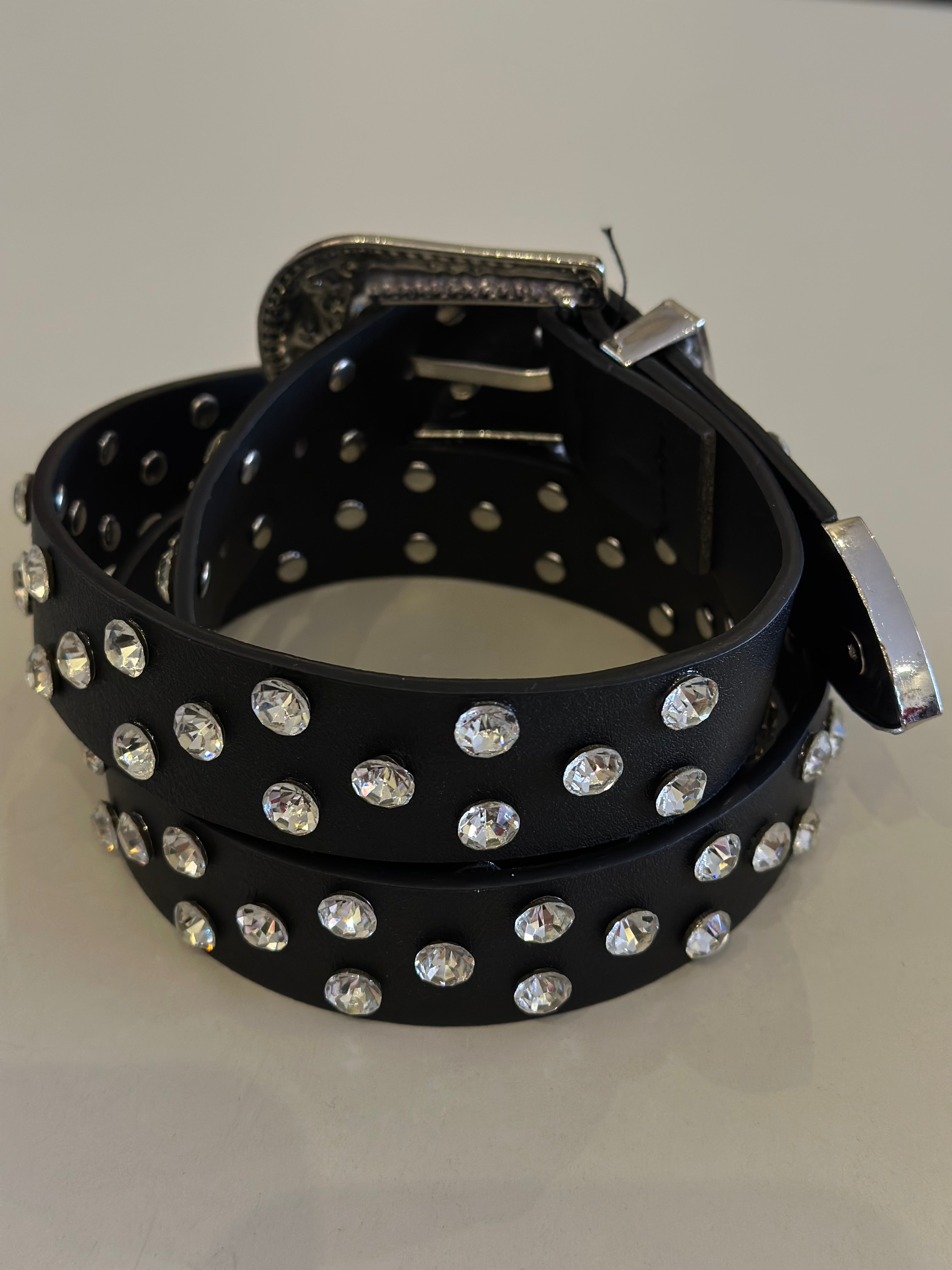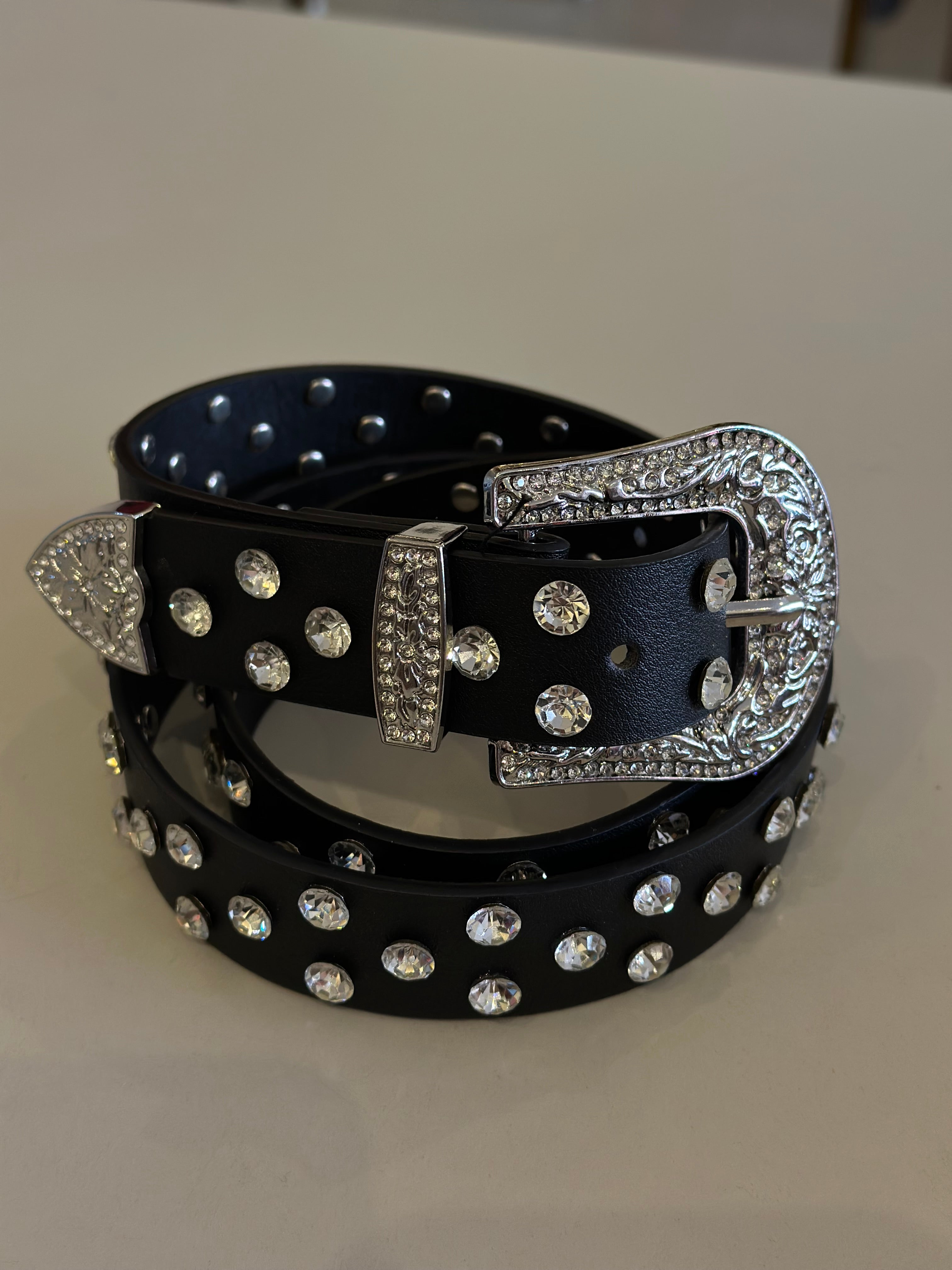 Feito em material sintético de alta qualidade, ele traz aplicações de strass por toda a extensão, além de uma fivela estilo western cravejada que é puro charme. Ideal para dar aquele toque fashion em produções mais básicas ou completar um visual mais ousado.